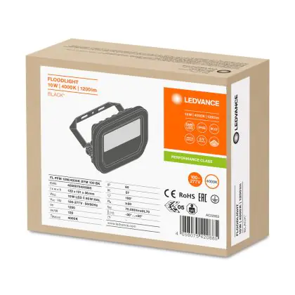 Beschreibung Ledvance LED-Scheinwerfer GEN 3 Schwarz 10W 1200lm 100D - 840 Kaltweiß | IP65 - Symmetrisch