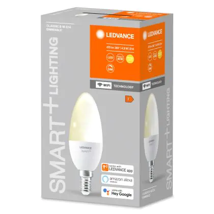 Die Ledvance Smart+ Wifi E14 Kerze 5W 470lm - 827 Extra Warmweiß | Dimmbar - Ersatz für 40W ist eine effiziente E14 LED-Lampe und der perfekte Ersatz für Ihre konventionellen 40W Lampen mit E14-Sockel. Zudem strahlt sie Licht in der Farbtemperatur 2700K - Extra Warmweiß aus und punktet durch eine lange Lebensdauer.
