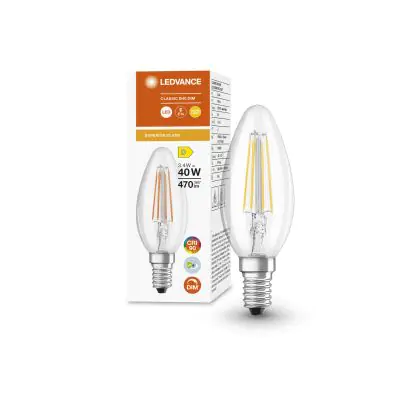 Die Ledvance Superior Classic LED E14 Kerze Fadenlampe Klar 3.4W 470lm - 927 Extra Warmweiß | Dimmbar - Höchste Farbwiedergabe ist eine effiziente E14 LED-Lampe mit Retrodesign und der perfekte Ersatz für Ihre konventionellen 40W Lampen mit E14. Zudem strahlt sie Licht in der Farbtemperatur 2700K - Extra Warmweiß aus und punktet durch eine lange Lebensdauer.