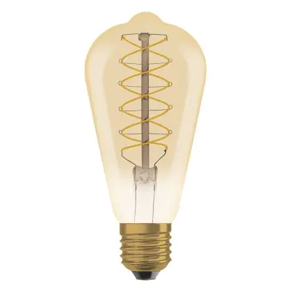 Die Ledvance Vintage 1906 LED E27 Birne Gold 7W 600lm - 822 Extra Warmweiß | Dimmbar - Ersatz für 48W ist eine effiziente E27 LED-Lampe mit Retrodesign und der perfekte Ersatz für Ihre konventionellen 48W Lampen mit E27. Zudem strahlt sie Licht in der Farbtemperatur 2200K - Extra Warmweiß aus und punktet durch eine lange Lebensdauer.