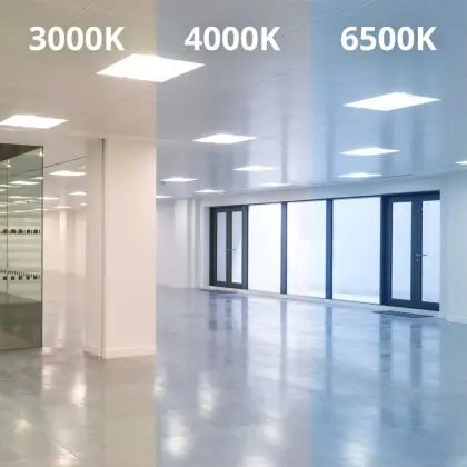 Das LED-Panel kommt mit der Farbtemperatur 6500K - Tageslichtweiß daher. Als Faustregel gilt: Je niedriger der Kelvinwert, desto gemütlicher wirkt das Licht.