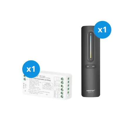 Dieses Set enthält eine Miboxer 1 Zone CCT Fernsteuerung und ein Miboxer 2-in-1 Regler (Einzelnd + Dual Weiß).